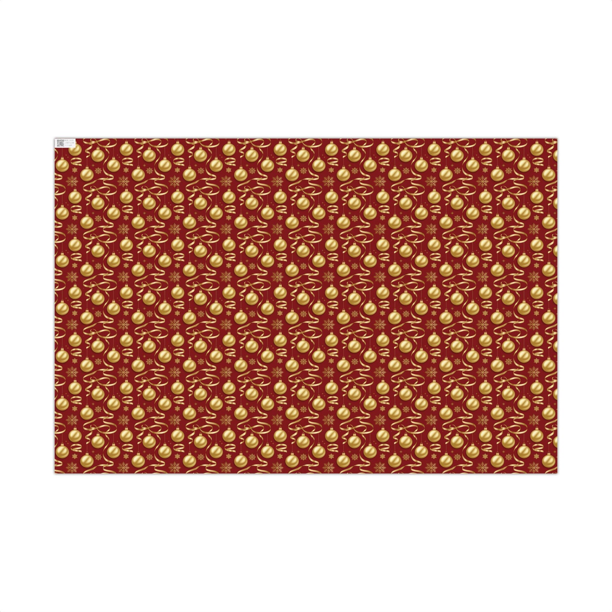 Christmas Gift Wrap Paper - Red & Gold Ornament Pattern, Holiday Wrapping Sheets