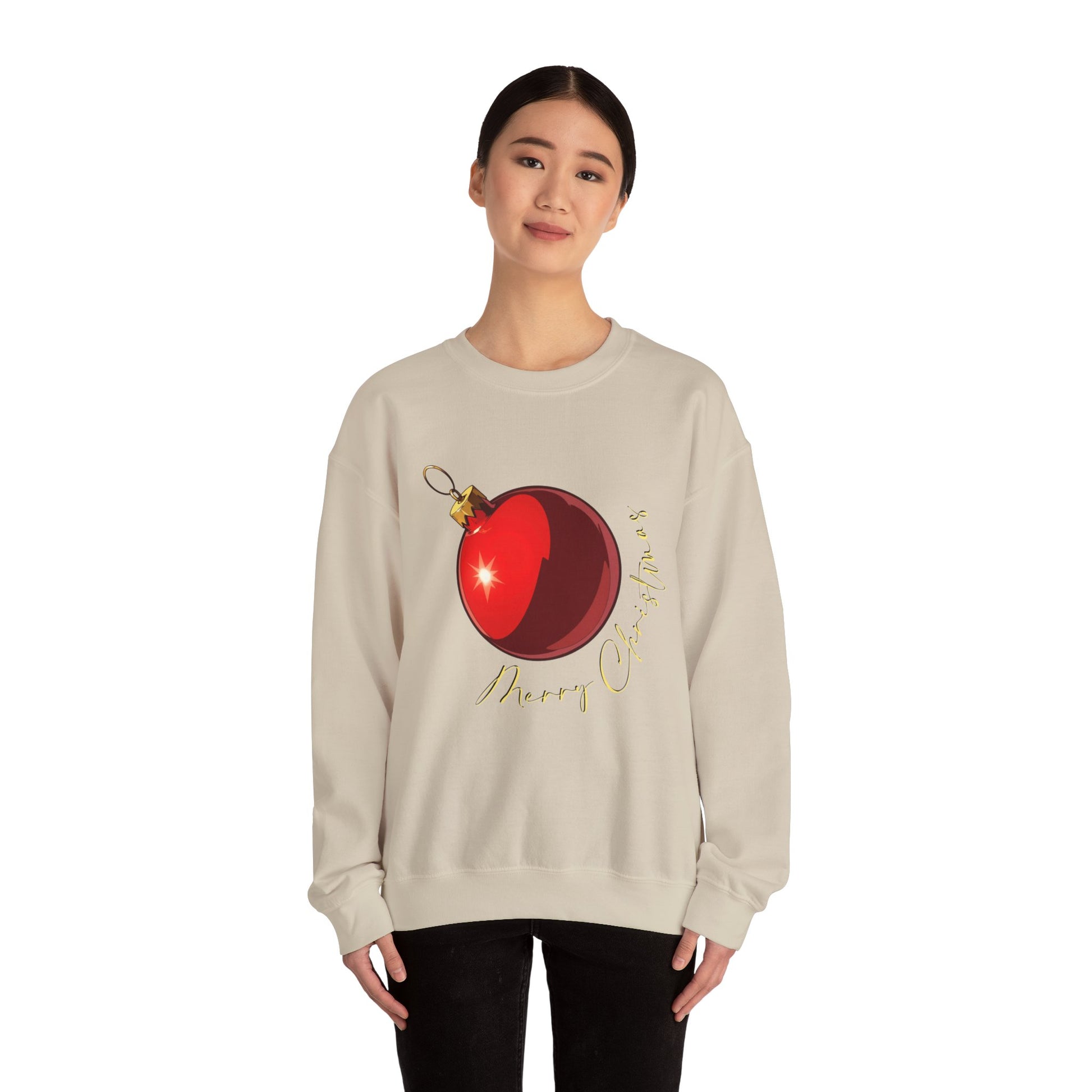 Christmas Ornament Crewneck Sweatshirt — Red Bauble "Merry Christmas" Holiday Sweater