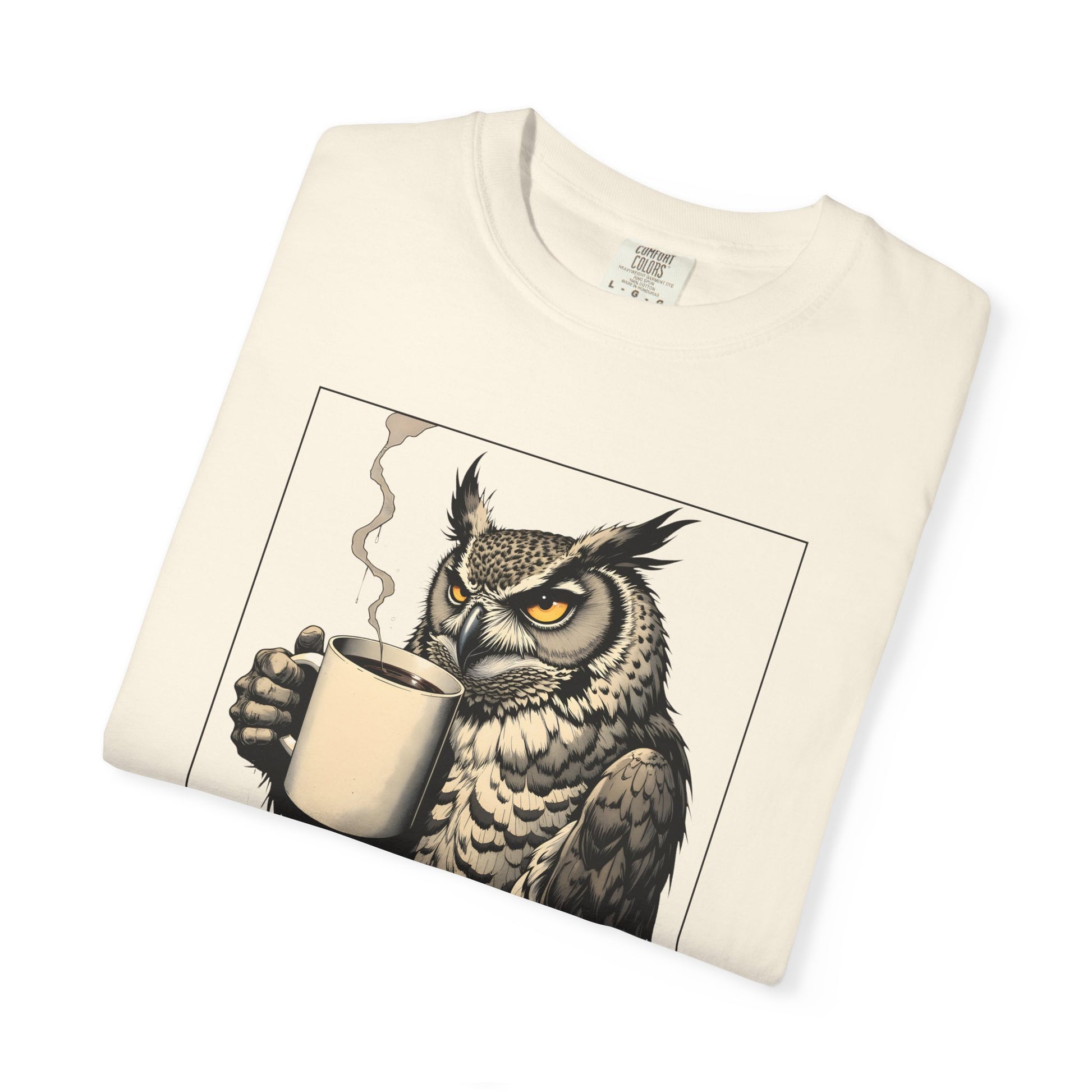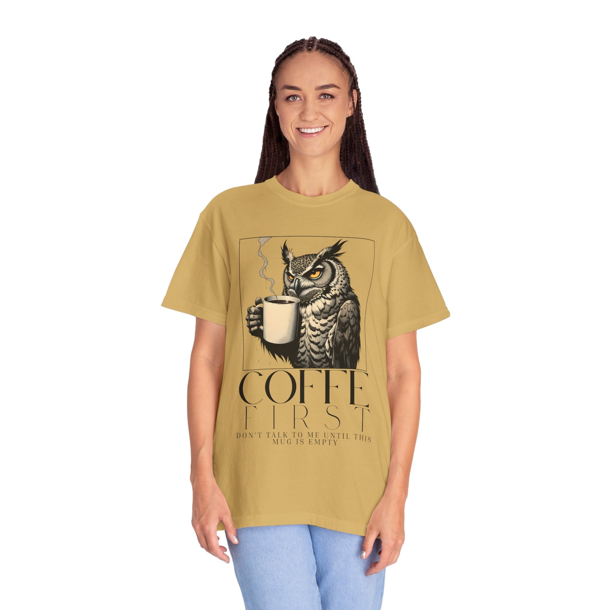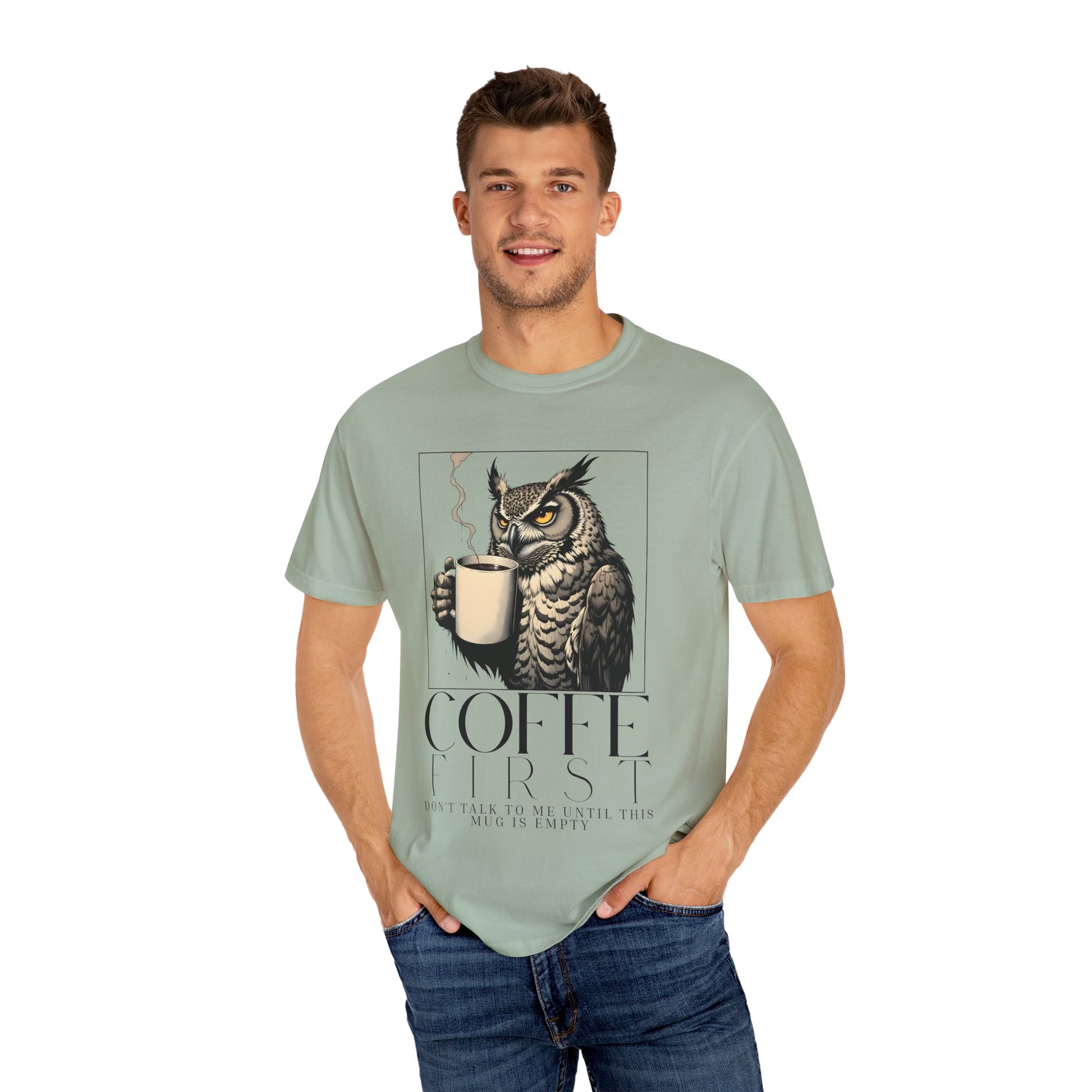 Coffee First Owl T-Shirt — Coffee Lover Graphic Tee