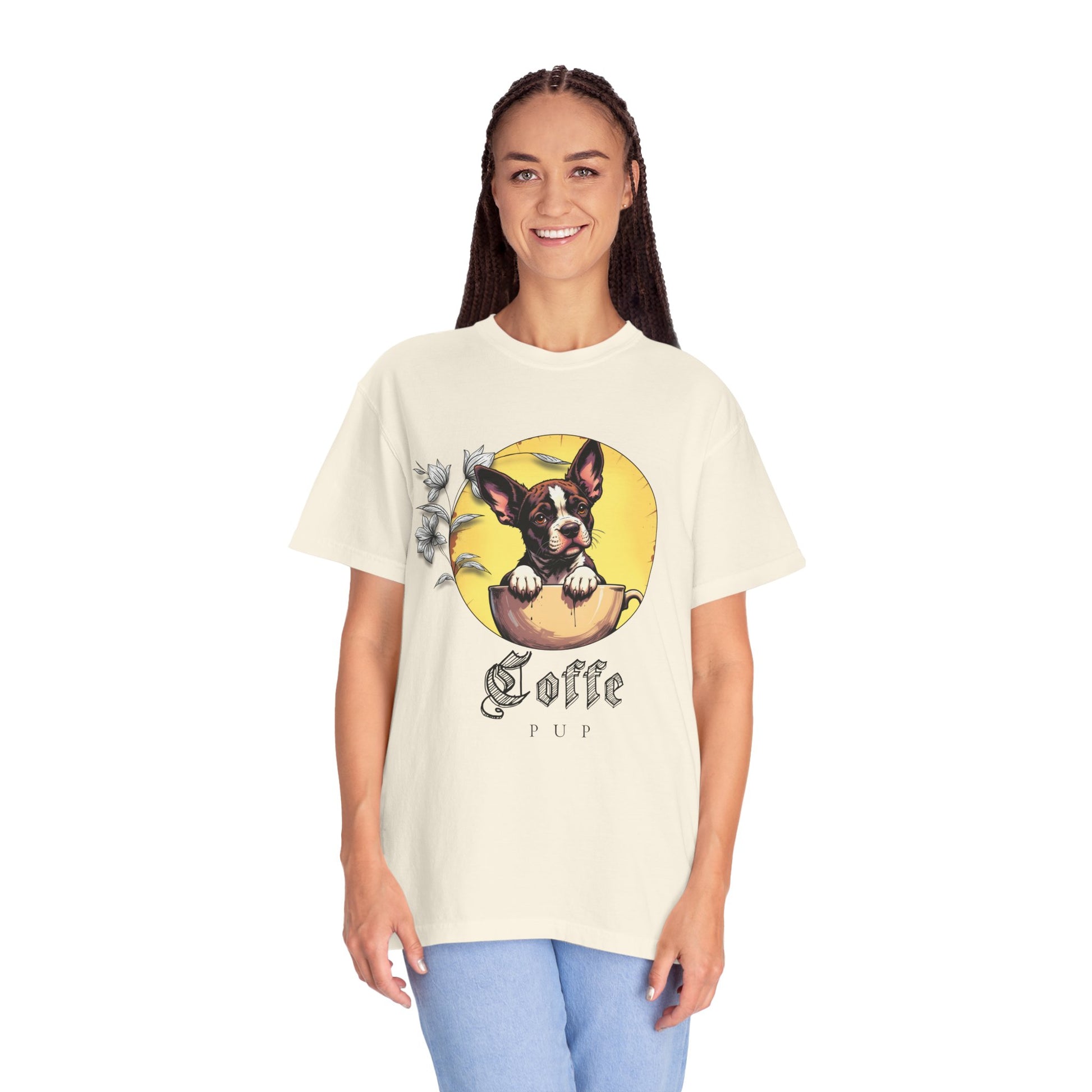Coffee Pup Unisex Garment-Dyed T-shirt - Cute Dog Lovers Tee