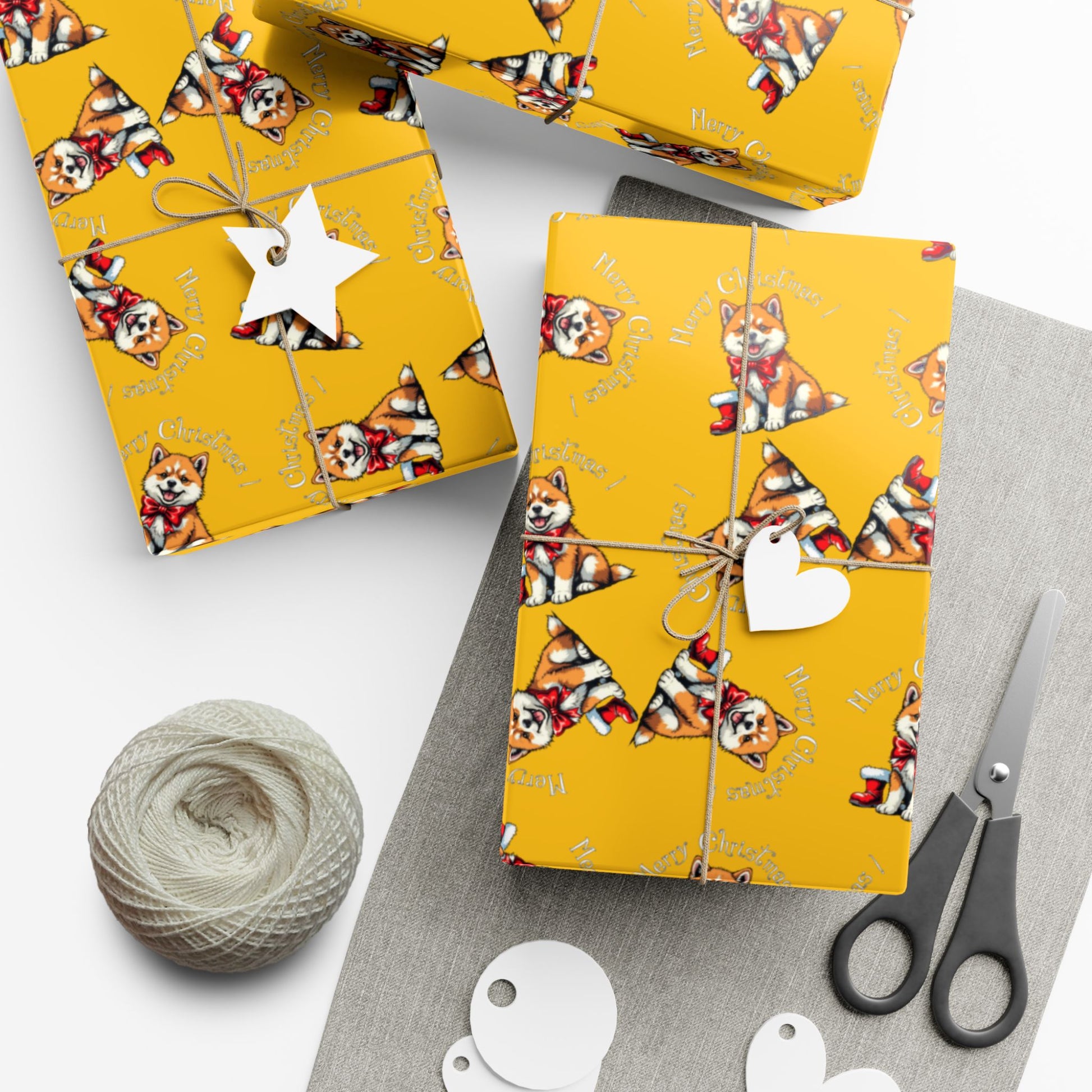 Bright, cheerful gift wrap that brings a playful, cozy energy to every package. The warm golden background sets off a repeating pattern of a small, festive dog wearing a striped scarf and hat — a little friend peeking out from each fold. The paper feels sturdy in your hands: flexible enough to crease without cracking, resistant to light scratches and spills, and printed with water-based GreenGuard UL certified inks so the colors stay vivid while staying kinder to indoor spaces. Choose satin for a subtle sheen or matte for a softer, modern look. Whether you’re wrapping a holiday surprise, a winter birthday, or a small housewarming token, these sheets add a spark of personality and a handcrafted touch to every gift.