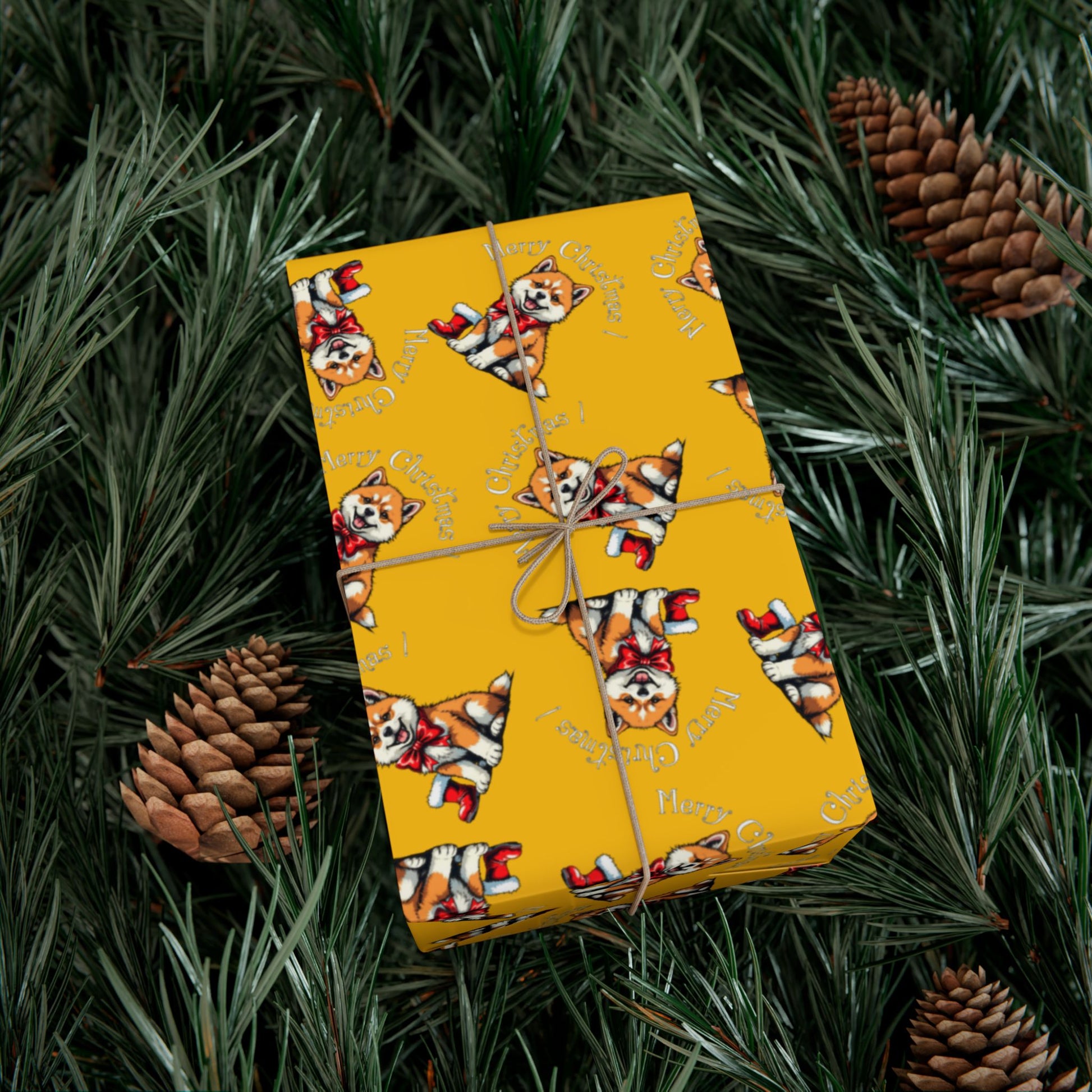 Dog Elf Pattern Gift Wrap Paper — Festive Shiba Inu Wrapping Sheets