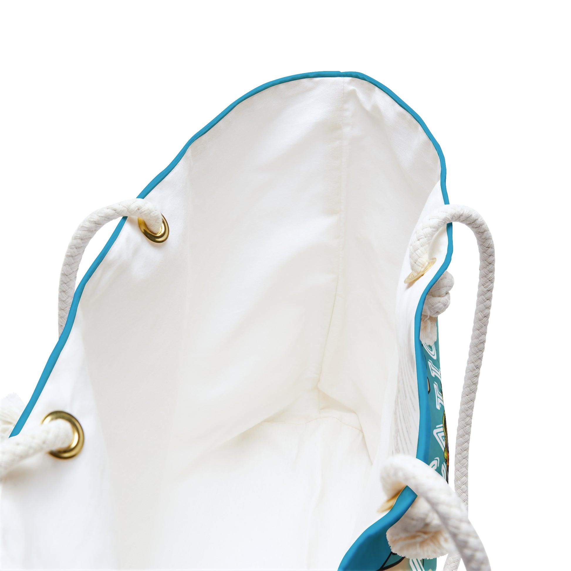 - Comfortable 27" cotton rope handles with gold metal grommets.