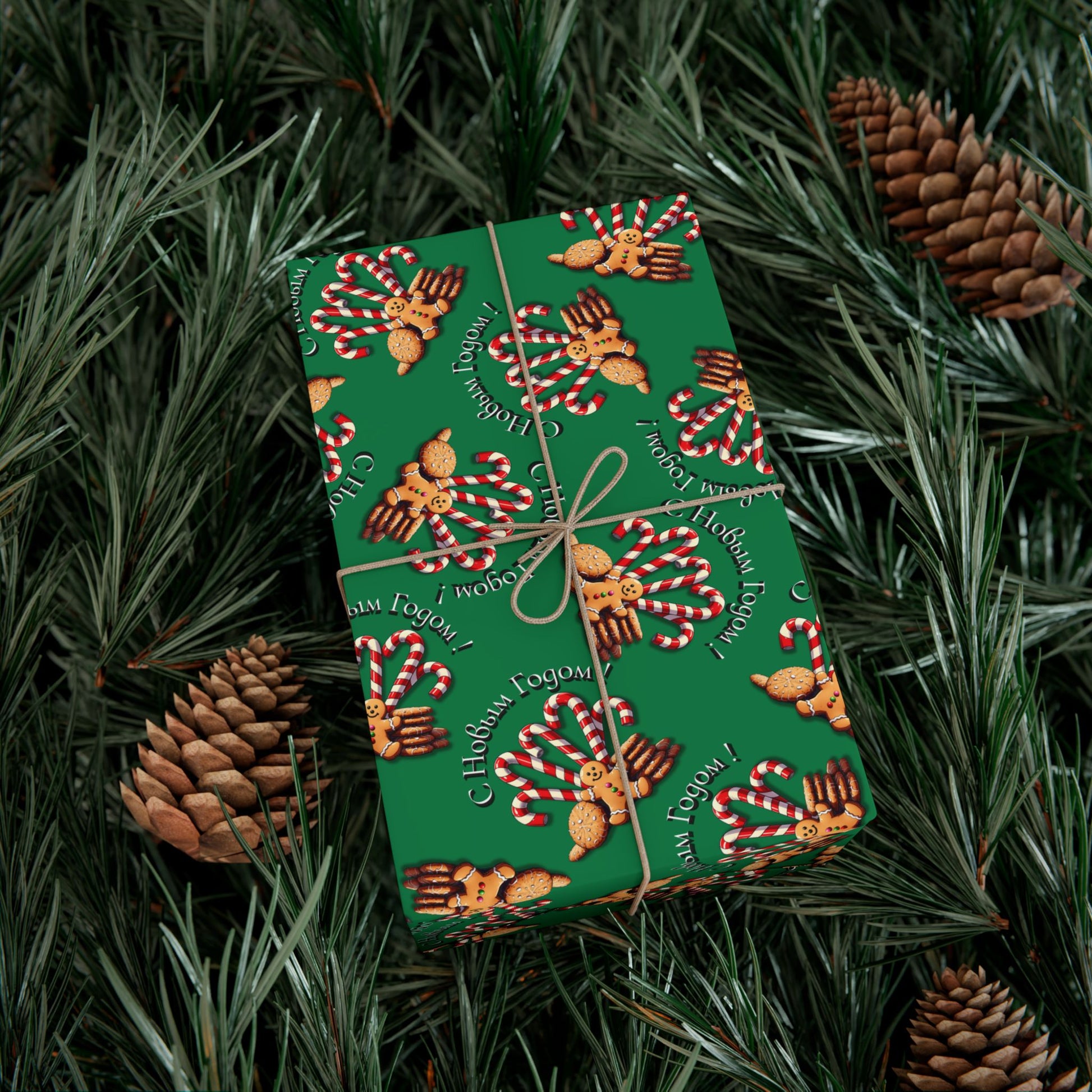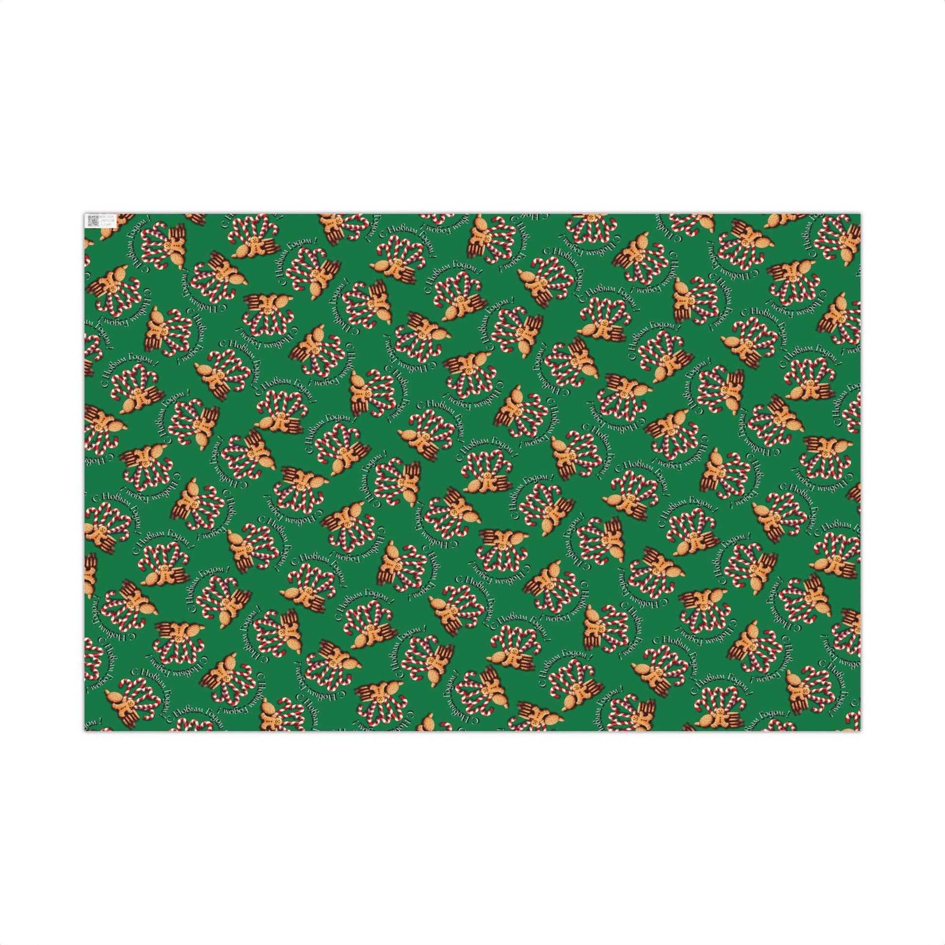 Gift Wrap Paper — Green Gingerbread & Candy Cane Pattern (Holiday Wrapping)