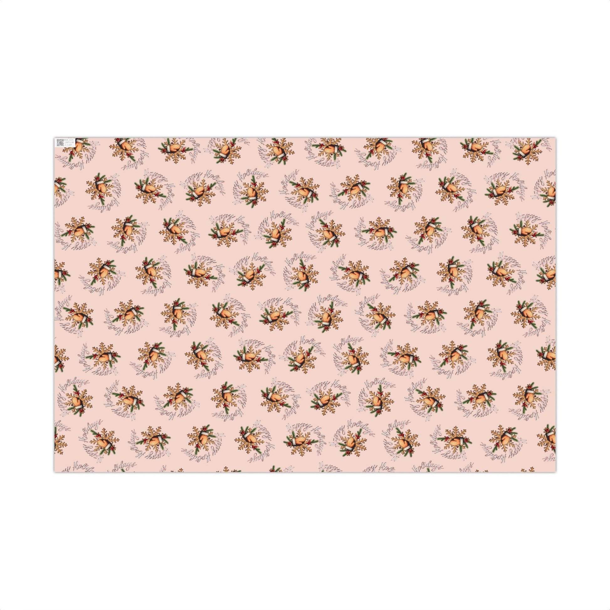 Gift Wrap Paper — Pink Vintage Floral Wreath Pattern (Holiday & Birthday Wrapping)