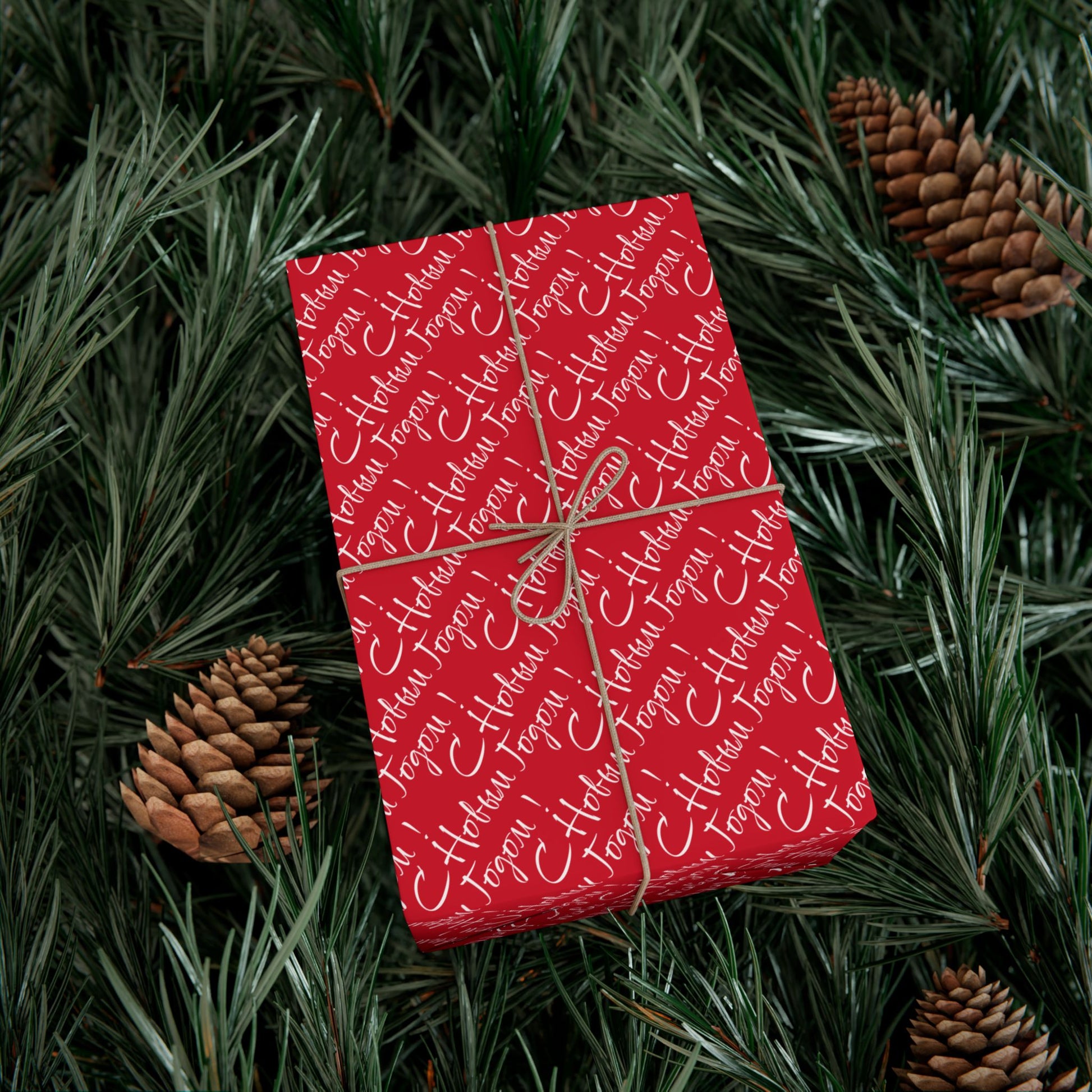 Holiday Gift Wrap Paper – Red 'Happy Holidays' Script Pattern
