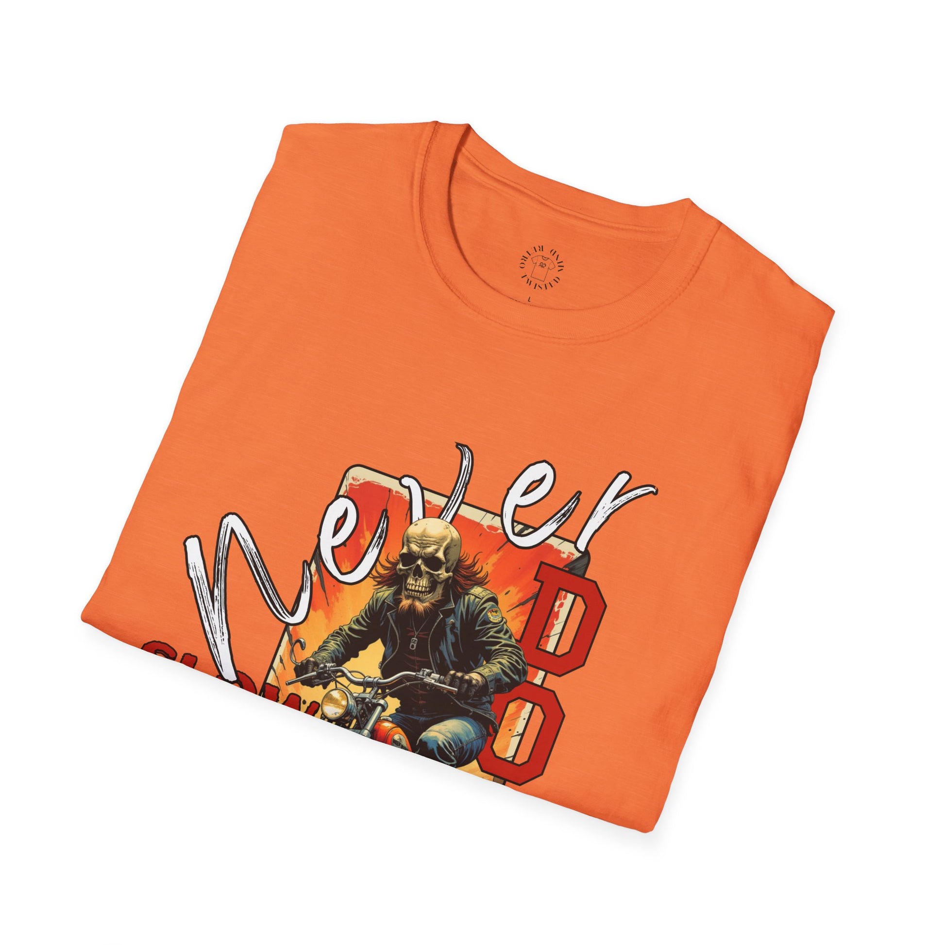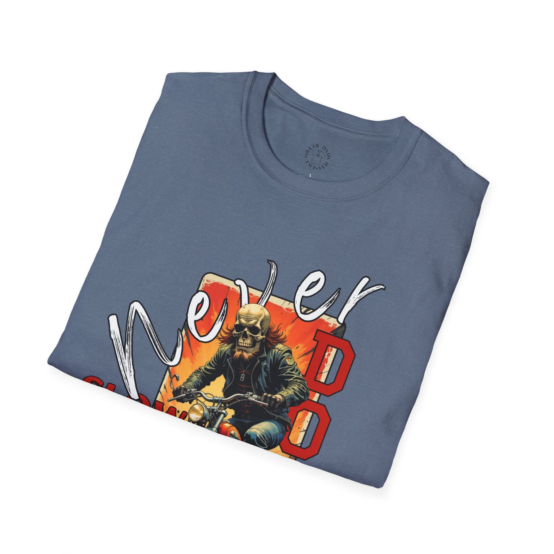 Never Slow Down Motorcycle T-Shirt - Unisex Softstyle Graphic Tee,biker, scull ,twisted