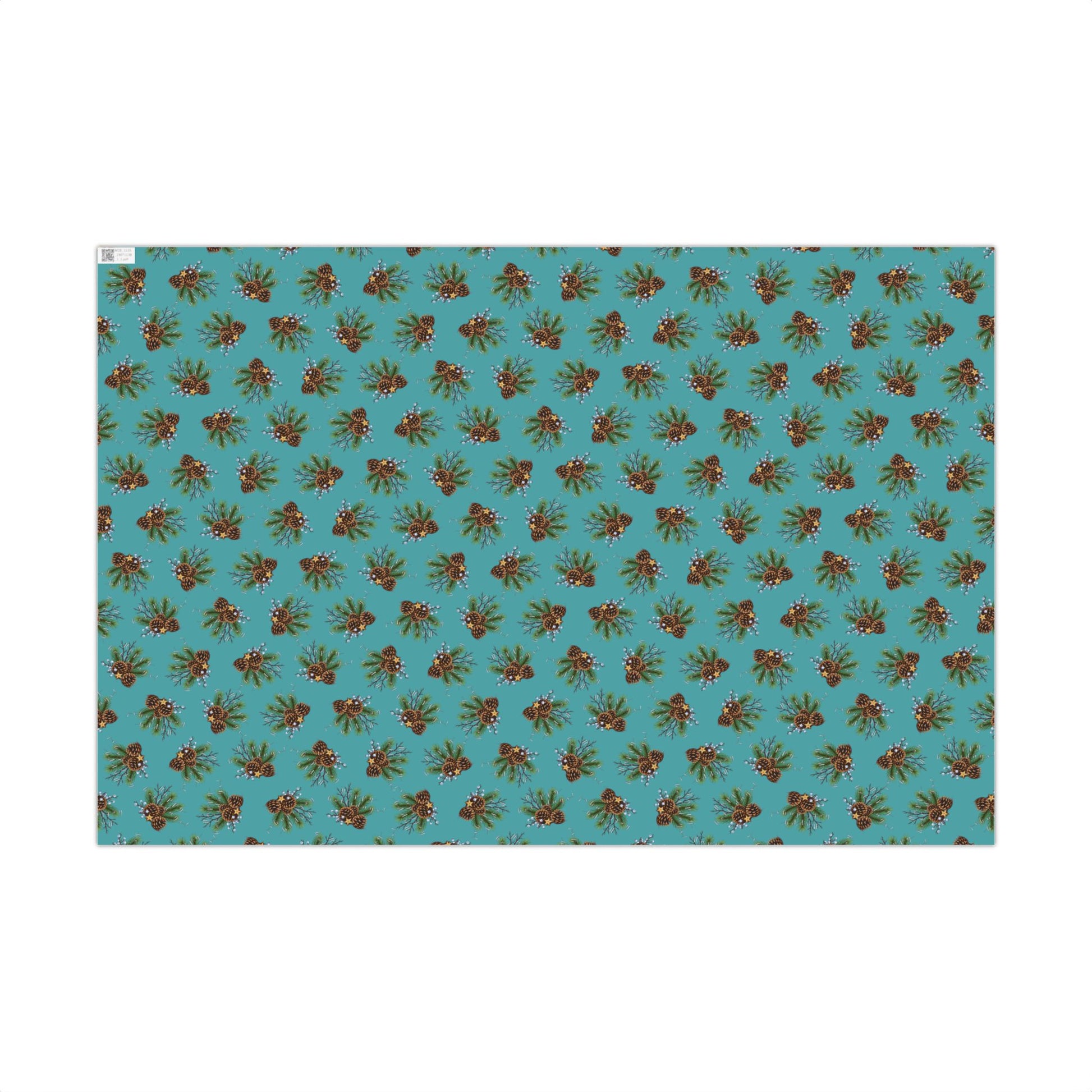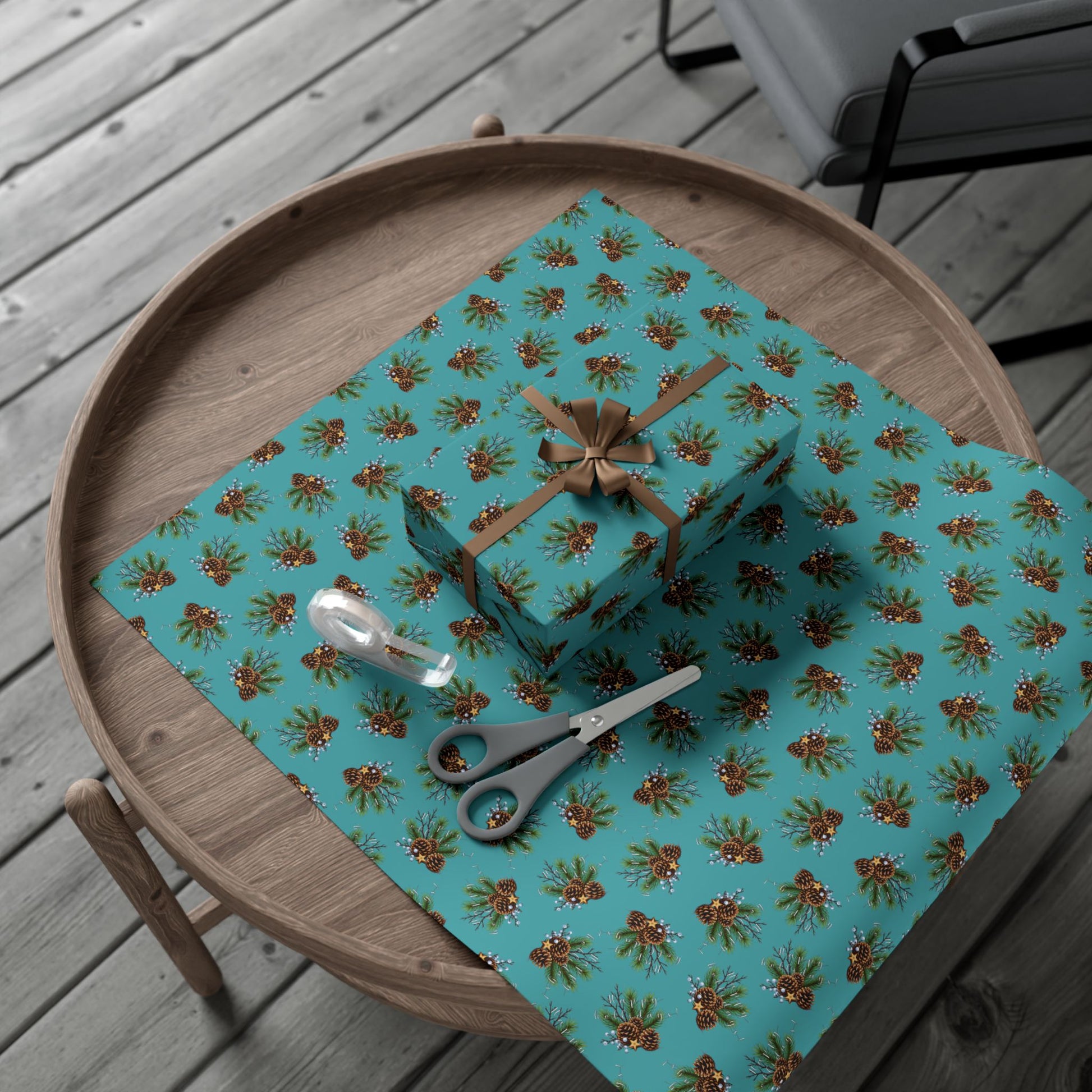 Pinecone Bouquet Gift Wrap - Rustic Teal Holiday Wrapping Paper