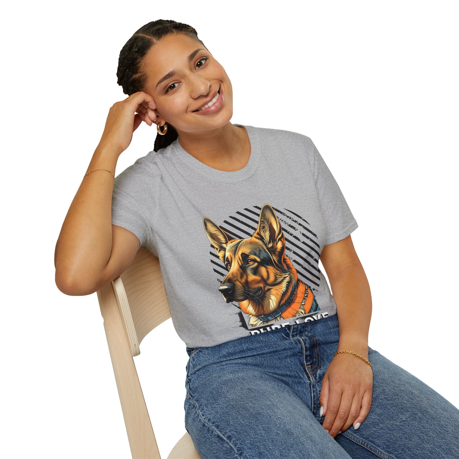 Introducing our Unisex Softstyle T-Shirt, the perfect blend of comfort and style. This tee showcases a vibrant design that exudes warmth and joy, making it an ideal choice for casual outings or cozy nights at home. Its classic fit and lightweight fabric ensure that you feel free and relaxed, no matter the occasion. It's a great gift for dog lovers or anyone who appreciates unique artwork, adding a personal touch to their wardrobe. Celebrate your love for pets or share it as a thoughtful present during holidays and special occasions like birthdays, anniversaries, or even casual gatherings with friends. Available in various colors, this shirt will quickly become a favorite in your everyday rotation.