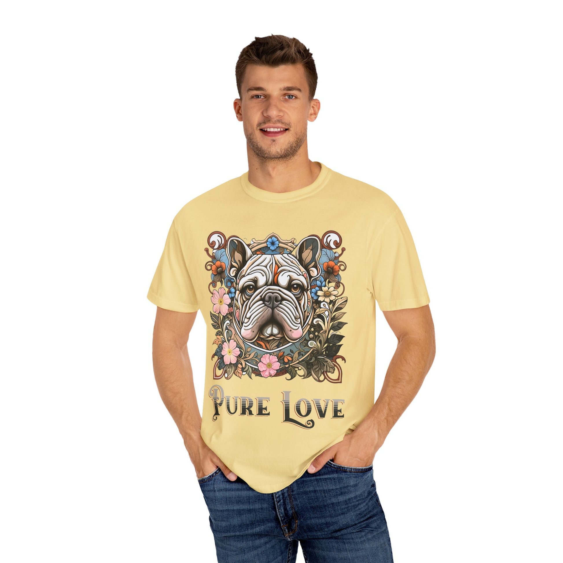 Pure Love French Bulldog T-Shirt | Garment-Dyed Unisex Tee for Dog Lovers