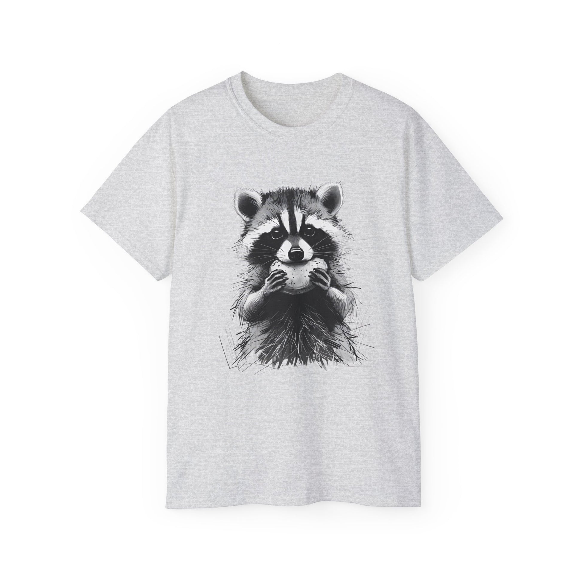 Raccoon Sketch Tee — Cute Black & White Wildlife Graphic T-Shirt