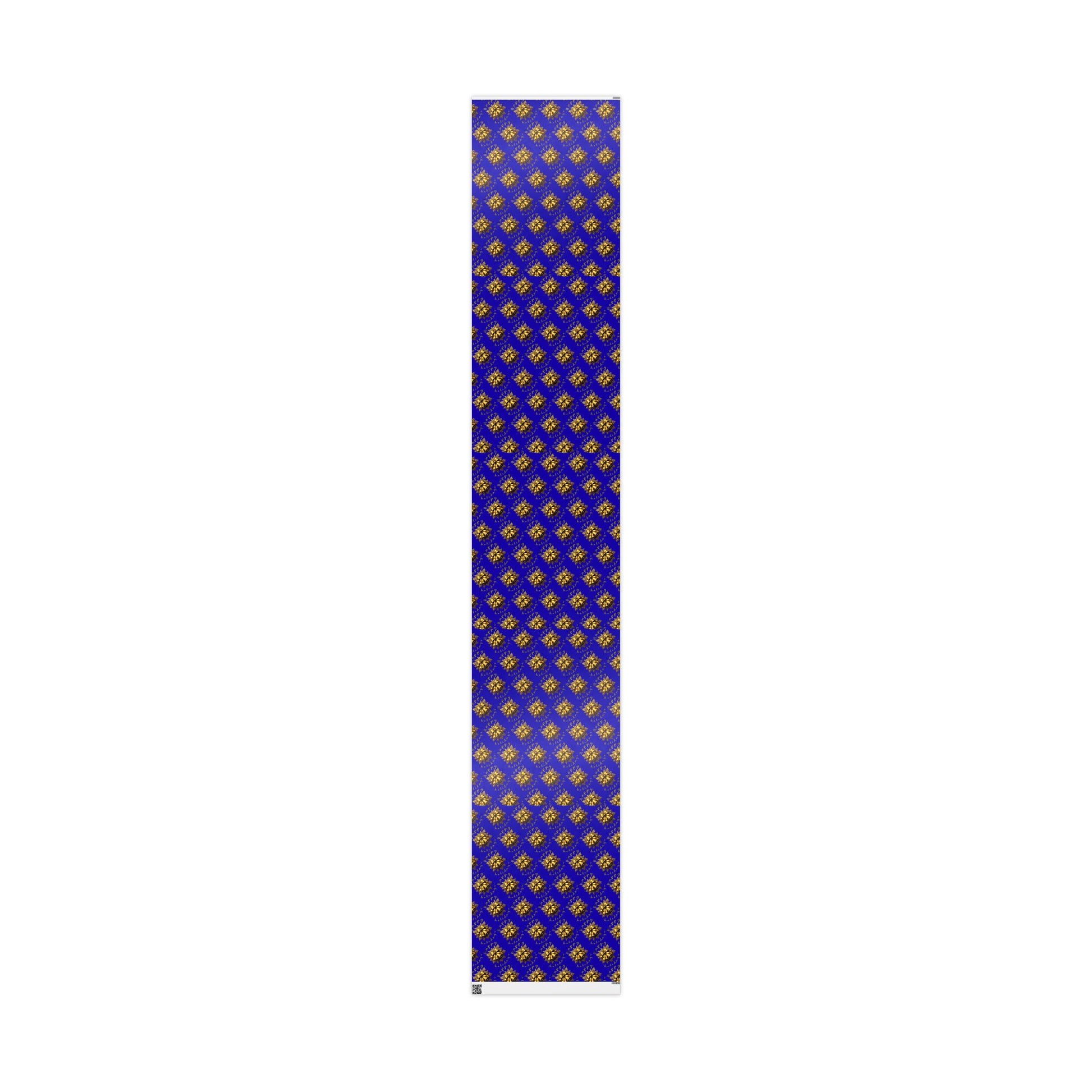 Deep, jewel-toned wrapping paper printed on thick 90gsm fine art stock. The rich royal-blue background sets off ornate gold motifs that read like hand-inked illustrations — swirls, floral accents, and ribboned wreaths that catch the eye without shouting. Choose a smooth matte surface for a refined, museum-like look or a high-gloss finish to make the metallic details pop. Long portrait rolls work especially well for tall items, bouquets, or multiple smaller parcels, and the one-sided print keeps the reverse clean for neat folds. This paper brings a polished, celebratory mood to the table — unwrap the kind of presentation that makes giving feel thoughtful and intentional.