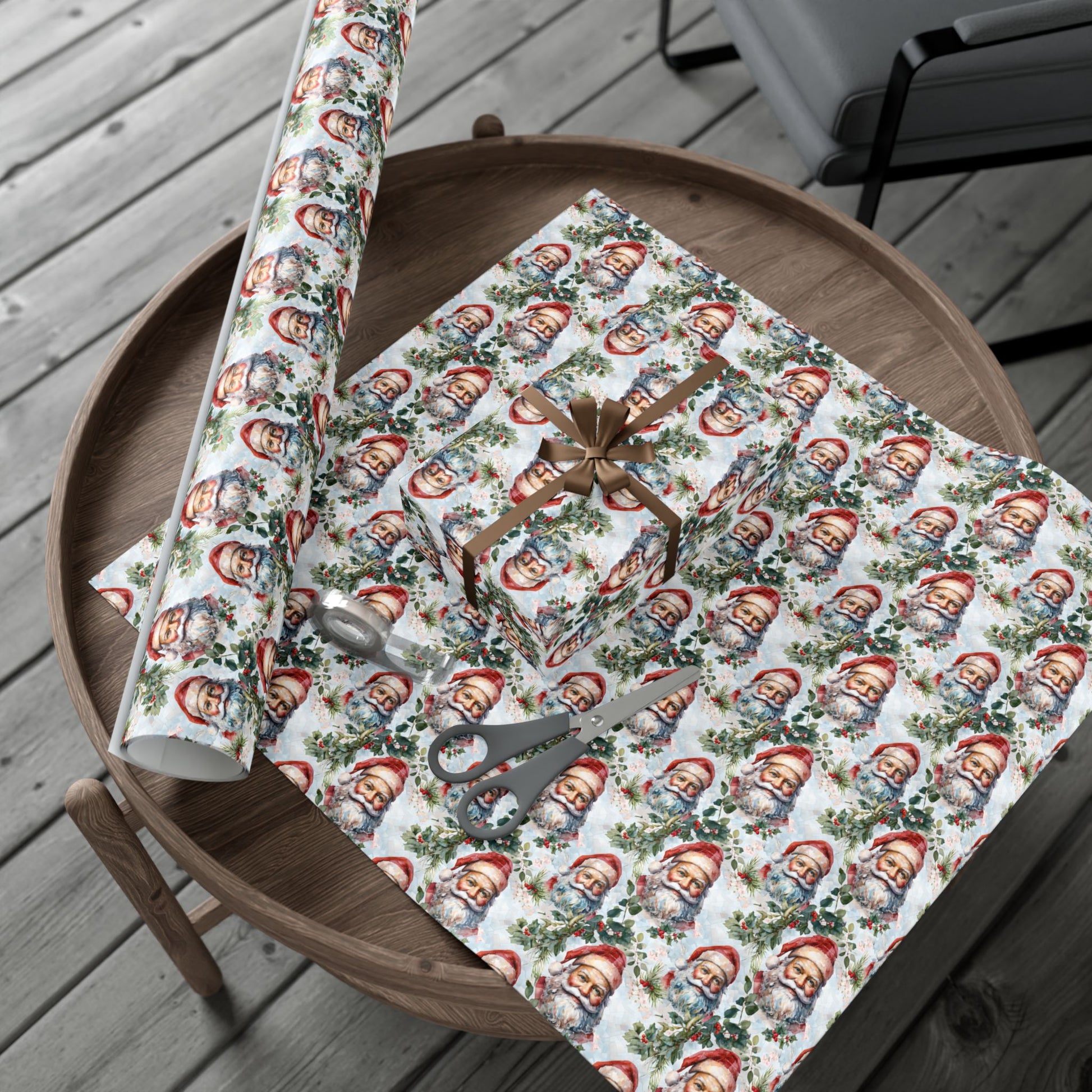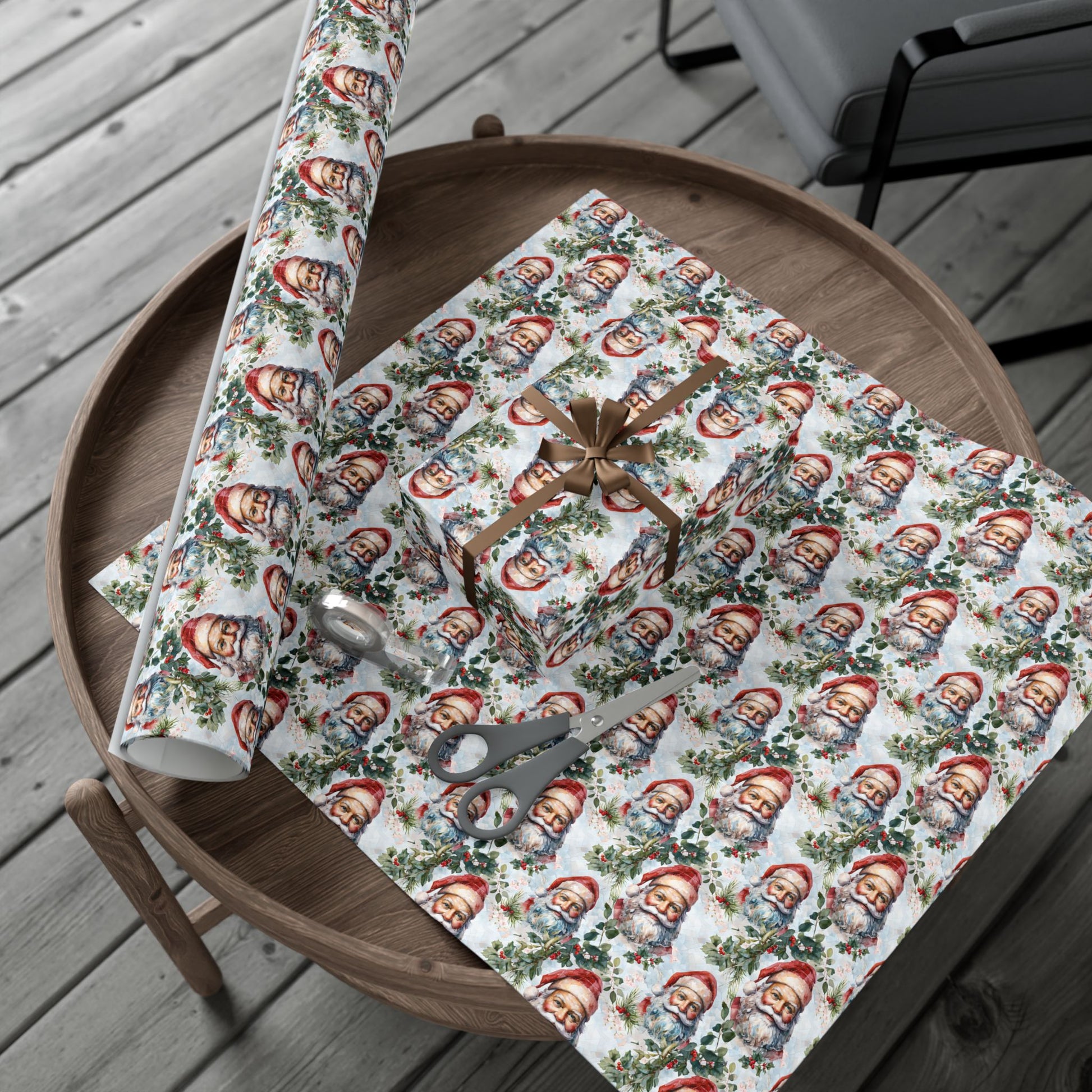 Santa Claus Pattern Gift Wrap Paper — Vintage Christmas Wrapping Sheets