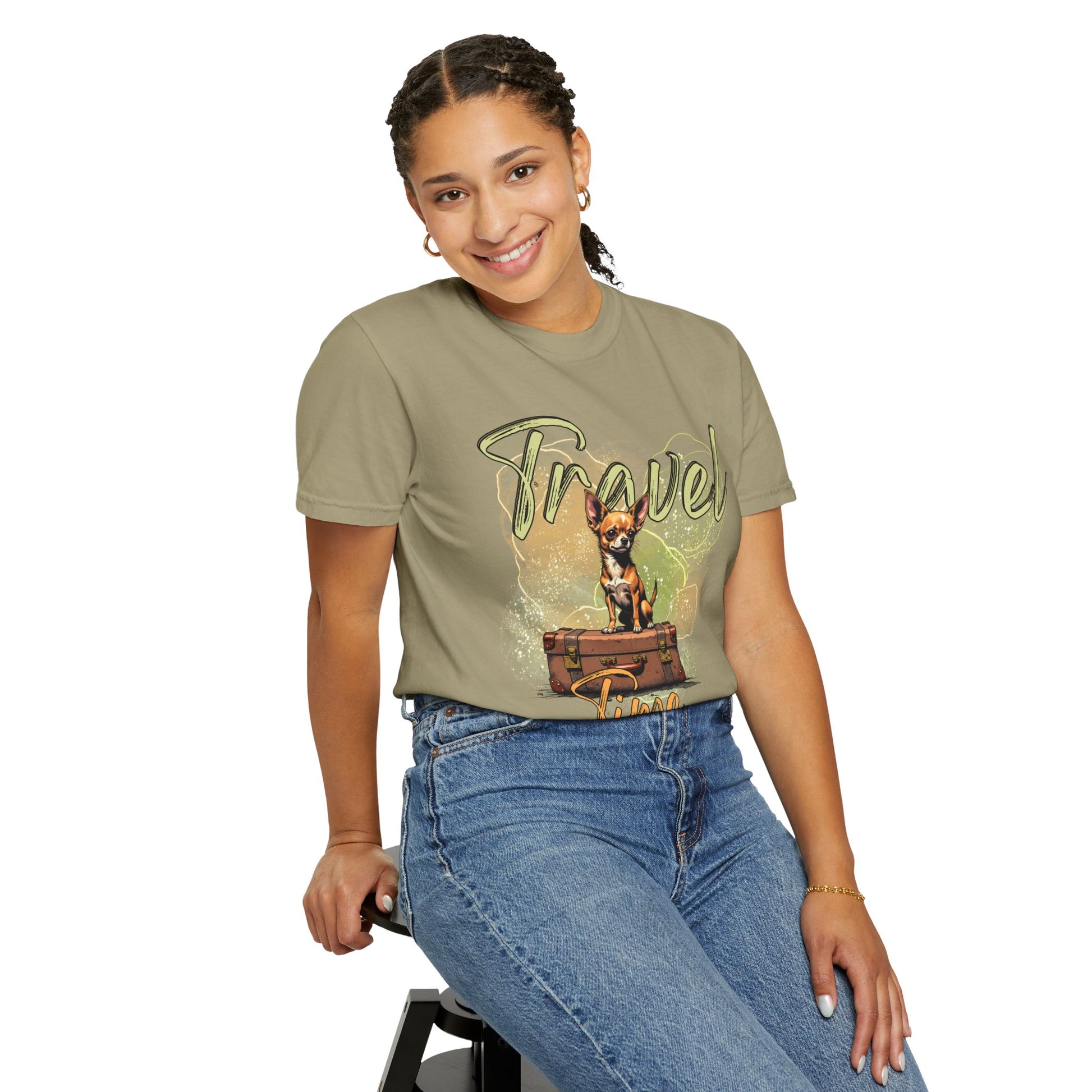 Travel Time Unisex Garment-Dyed T-Shirt - Cute Dog Design for Animal Lovers