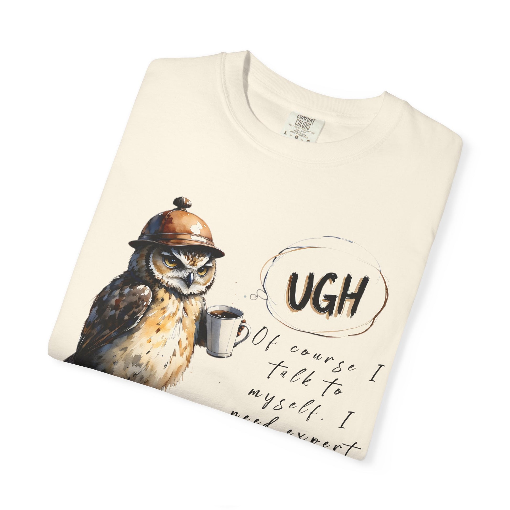 “Ugh” Owl Coffee T-Shirt — Cute Illustrated Owl Saying “UGH” with Coffee