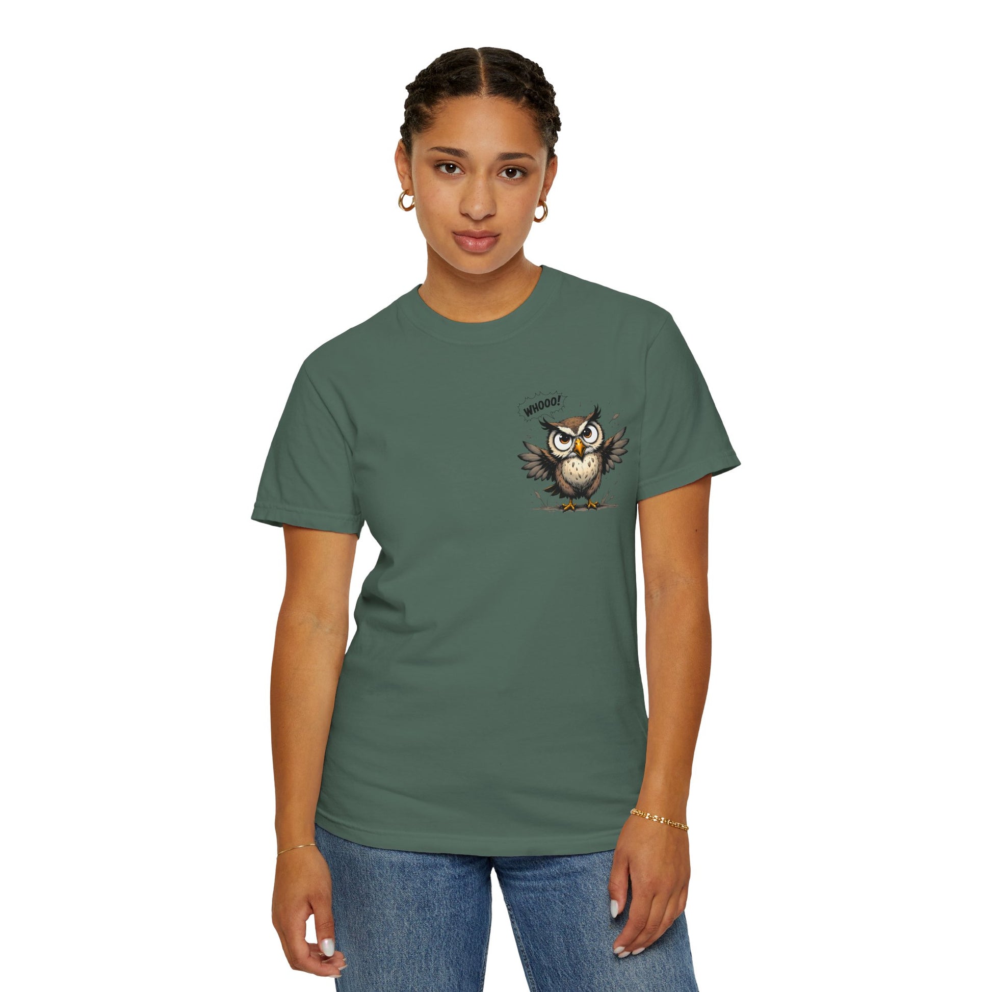 Witty Owl Graphic Tee — "Whooo?" Cute Cartoon Owl T-Shirt