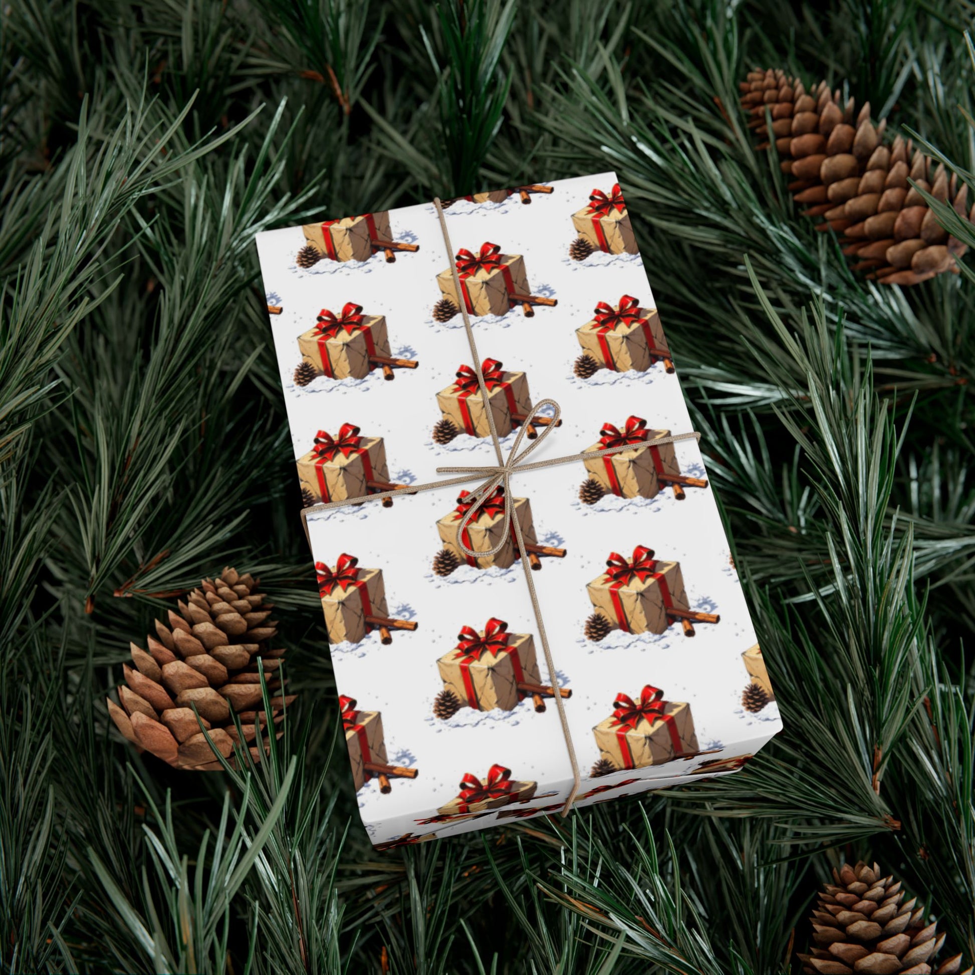 Crisp, festive gift wrap printed with clusters of wrapped presents and tiny winter accents on a clean white background. The repeat pattern reads joyful at any scale — from small stocking stuffers to larger boxes — and the satin or matte finish gives you control over sheen. The paper feels sturdy and flexible, holding neat folds without cracking, and the colors stay bright thanks to water-based GreenGuard-certified inks. Use it to package thoughtful holiday parcels, hostess surprises, or cozy winter market finds; the look adds warmth without overpowering your chosen ribbons and tags.