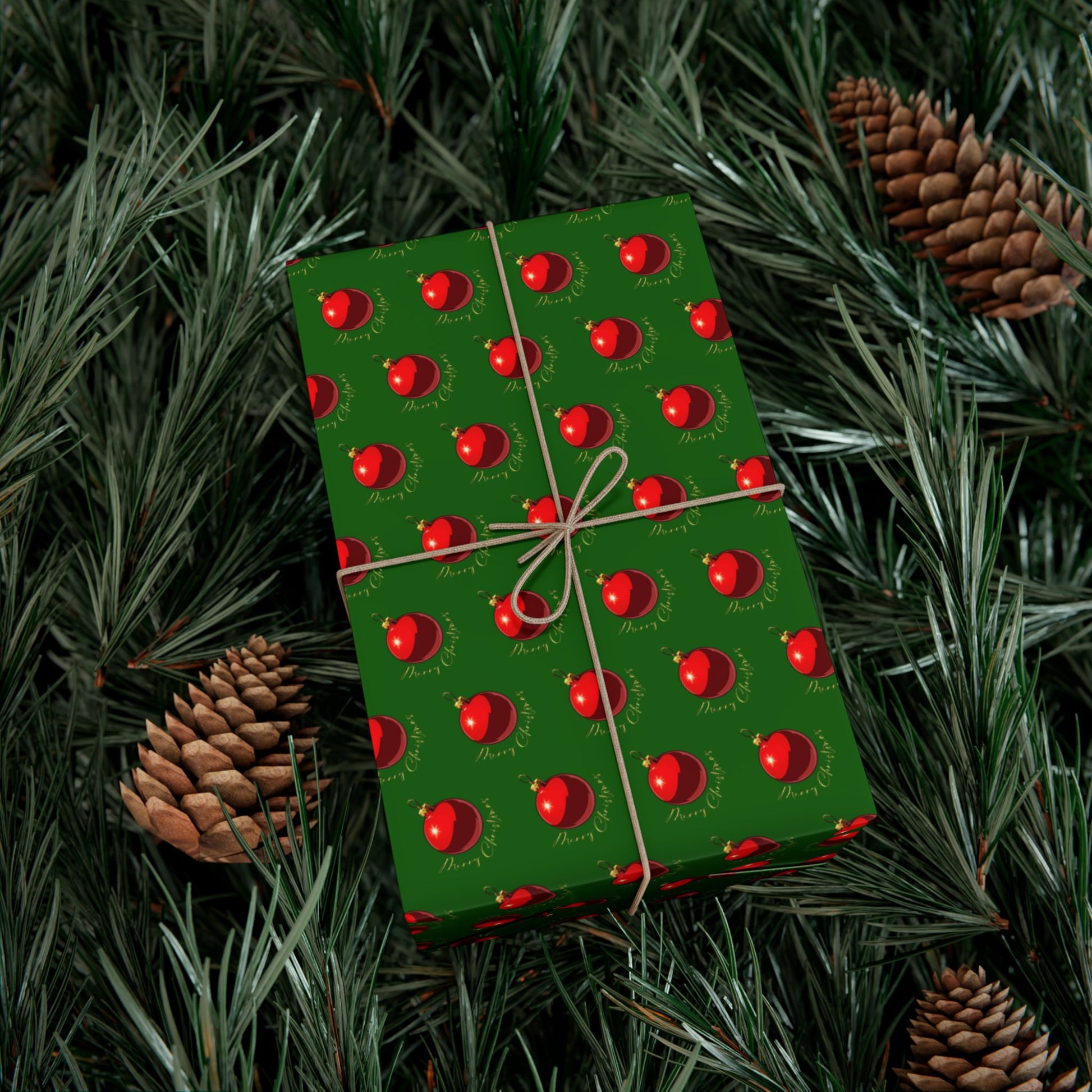 Wrapping Paper (Green with Red Ornaments)