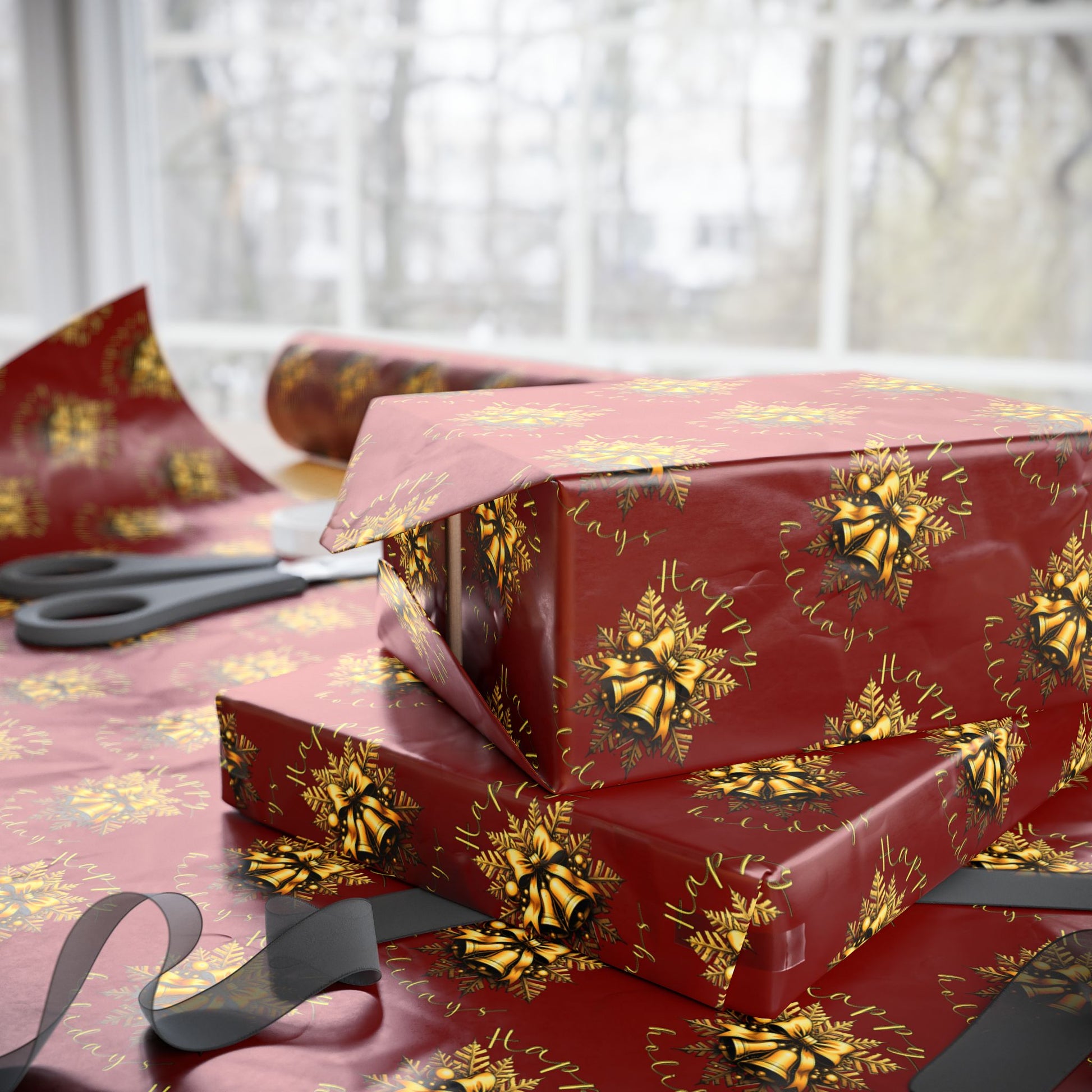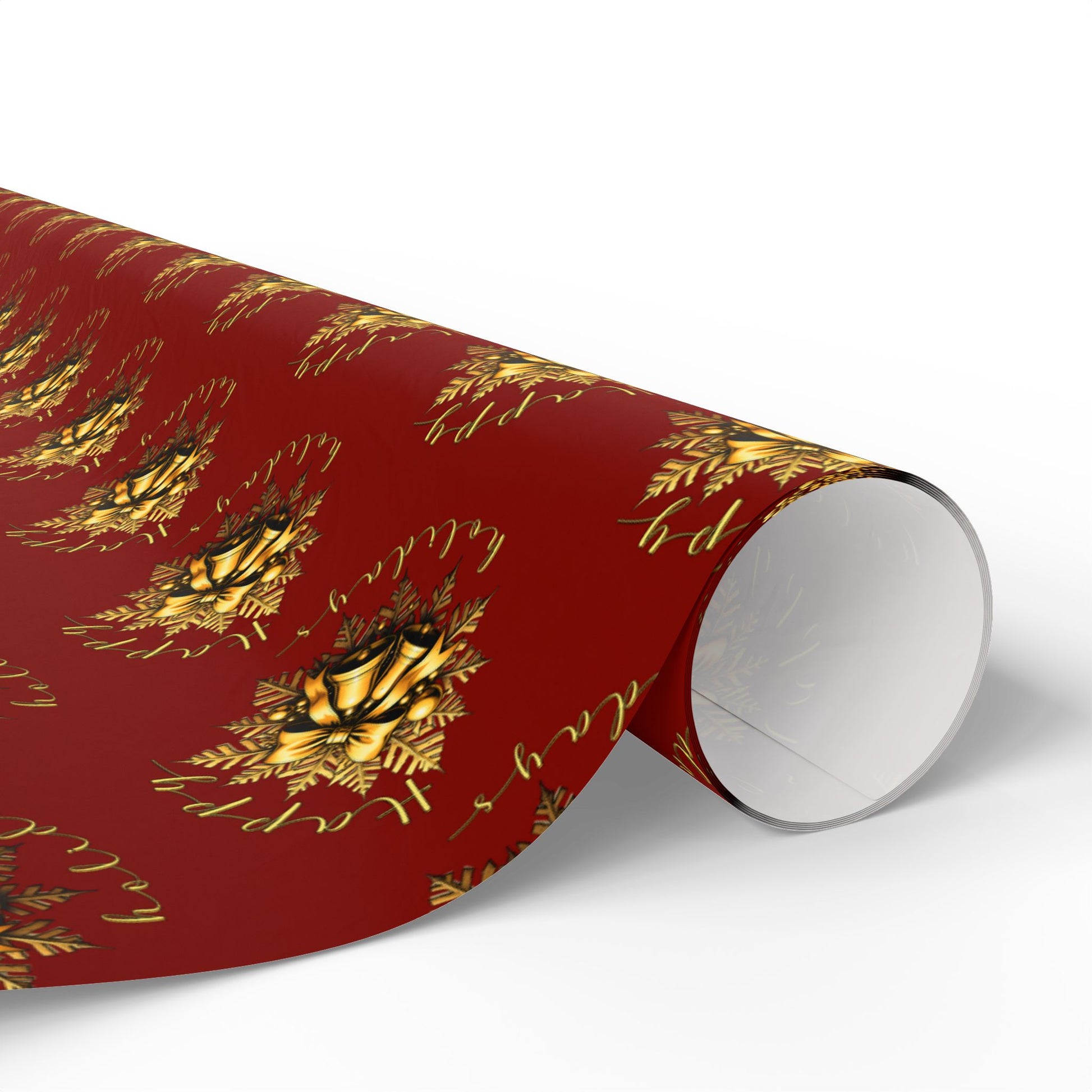 Rich, deep-red wrapping paper patterned with hand-drawn gold foliage that feels both warm and luxurious. The design reads like a small celebration—subtle metallic tones against a matte or glossy field that bring out texture and depth. Use a long strip to finish a narrow box or wrap a statement bottle; the repeat pattern keeps seams low-profile and elegant. The paper lays flat, folds crisply, and pairs beautifully with natural twine, wax seals, or a bold satin ribbon for a refined, tactile finish.